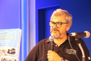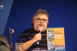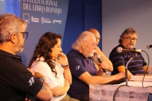 También vamos a presentar el tomo 2 y el tomo 3 de la historia de la Federación Aceitera, ya cuando la federación cumplió 70 años presentamos el tomo 1 y ahora vamos a presentar aquí en Rosario el tomo 2 y el tomo 3 que reúne todas las actividades de los aceiteros y desmontadores a lo largo de estos años, en donde están registradas todas las huelgas, los conflictos, los congresos de aceiteros, los cursos de formación, los comunicados, las luchas y la historia de los trabajadores por los trabajadores mismos, que es una historia muy rica y que lleva a que podamos producir este tipo de libros que es retomar las viejas tradiciones del movimiento obrero, cuando anarquistas y socialistas imprimían libros, imprimían periódicos, que la Federación Aceitera también imprime, tiene un periódico y por eso la importancia de que esté la voz de los obreros, la memoria de los obreros en una feria internacional como esta. Además hay una marca muy interesante, un marco precisamente que tiene que ver con la lucha aceitera, que muchos gremios también lo expusieron.