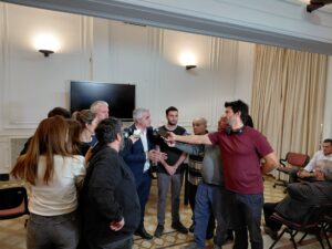 Franco Bartolacci junto a los representantes gremiales de la UNR. «Necesitamos que se garantice el presupuesto universitario».