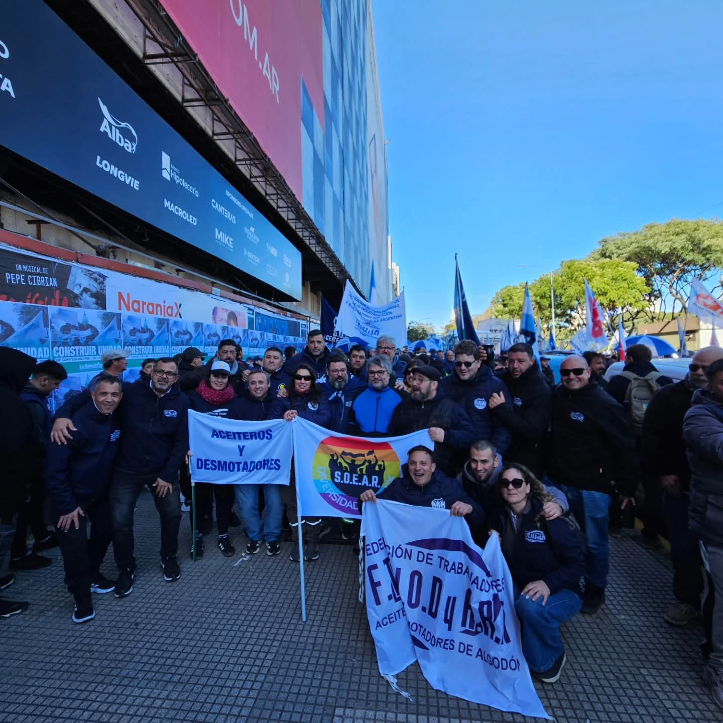El Sindicato de Obreros y Empleados Aceiteros de Rosario (SOEAR), movilizó a Capital Federal para marchar junto a más de 70 gremios y organizaciones que conforman el Frente de Lucha por la Soberanía, el Trabajo Digno y los Salarios Justos.
