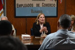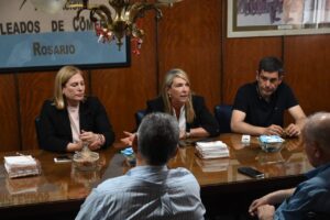 En el salón principal del gremio de los mercantiles, la plana mayor de la Asociación de Empleados de Comercio recibió a la Vicegobernadora Gisela Scaglia y a la Presidenta del Concejo María E Schmuck y Adrian Pullaro concejal electo de Rosario.