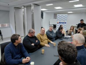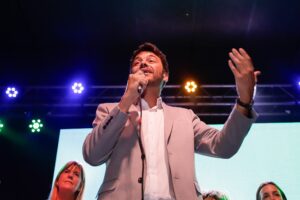 Juan Monteverde – Para mí lo decía, es un orgullo enorme estar hoy acá recibiendo el apoyo de tantos de tantos gremios y uno de ellos dijo bueno vos sos el candidato de los trabajadores, ese para mí es el halago y el mismo y la caricia más grande que pueden hacer porque la verdad que si uno… yo ser… si no fuera el candidato de los trabajadores no tendría sentido ser candidato, yo quiero ser el intendente de los que trabajan en la ciudad y la verdad que esto es un gran apoyo porque creo que lo que se juega el domingo no son simples bancas en el consejo, creo que es la posibilidad de que en el 2027 Rosario después de tanto tiempo tenga el cambio que se merece y con el eje central en los laburantes, digo es muy sencillo, como va a ser la ciudad del futuro, va a ser una ciudad donde los que trabajan van a estar en el centro.