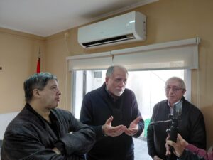 Estoy acompañado acá a mi izquierda, el compañero Tesorero Es el Secretario General de la Plata, Ahí lo tenemos al compañero Rodolfo Martínez, que es Secretario de Prensa, que es de allá de Zarate, Capital También estoy con José López, que es mi Secretario Adjunto, que es de Salta, Marcelo Padín, Secretario de Turismo, que es de Olavarría También me acompaña el compañero Niate, que es de Concordia