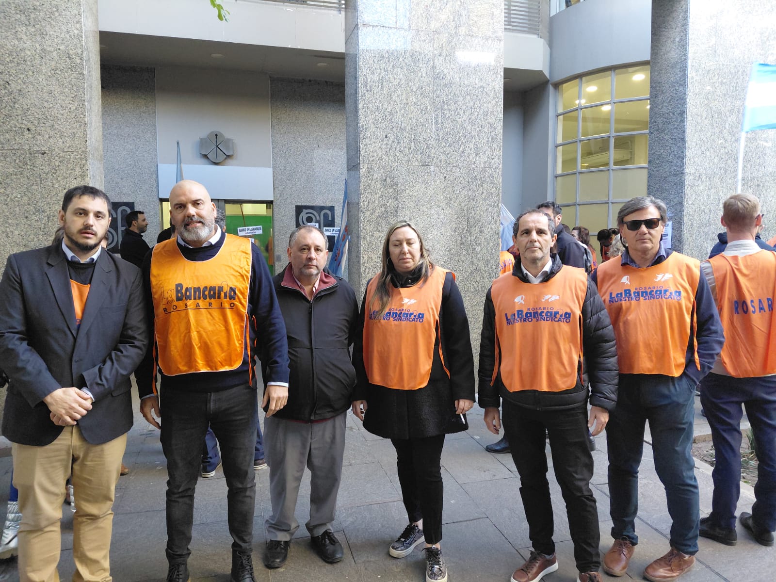 Esta mañana en la peatonal Córdoba, se inicio la protesta de los bancarios encabezada por su Secretaria General Analía Ratner frente al local de la casa central del Banco de Santa Fe.