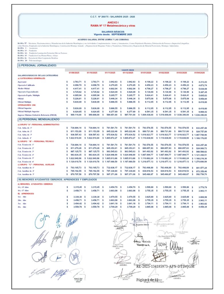 Con el inicio de enero de 2026, los trabajadores metalmecánicos comienzan a percibir el incremento correspondiente al acuerdo firmado por la Unión Obrera Metalúrgica (UOM) con las cámaras Adimra, Afarte, Camima, Caiama, Fedehogar y AFAC.
