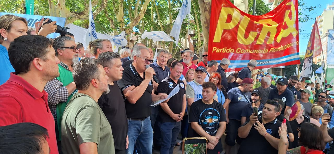 En un concurrido acto de la CGT Regional Rosario, primera prueba en la calle junto a los trabajadores de todos los gremios que componen la central obrera de Rosario ,obtuvimos las declaraciones de los dirigentes gremiales.