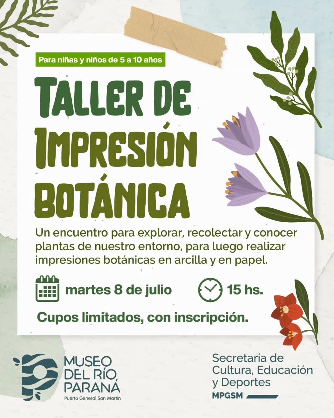 El martes 8 de junio, a las 14,30hs, cine en el auditorio del Centro Cultural con la proyección de “Lilo y Stich”. Y Taller de impresión botánica en el Museo del Río Paraná, un encuentro para explorar, recolectar y reconocer plantas del entorno y realizar impresiones en arcilla y en papel.