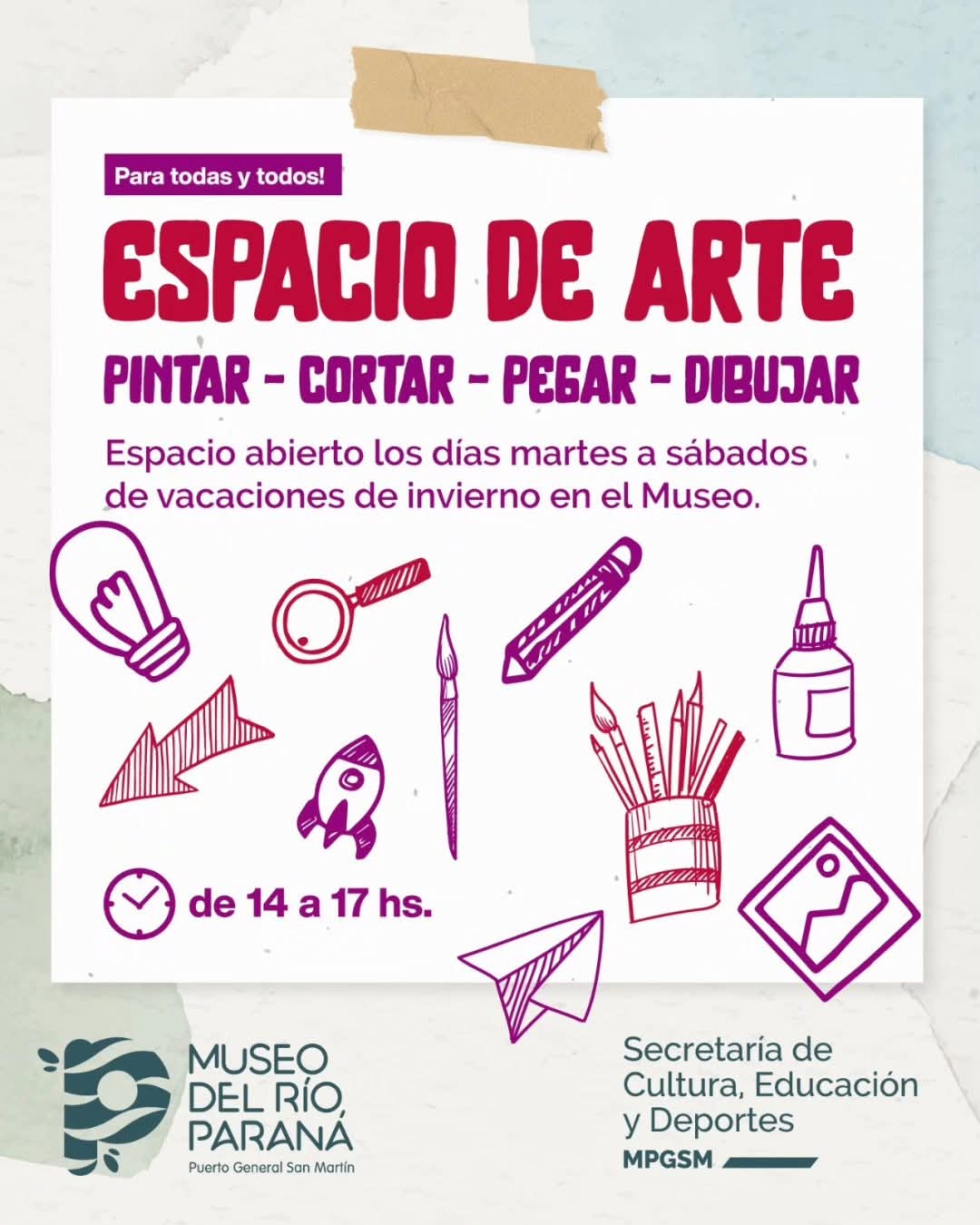 Además, de martes a sábado, en el horario de 14 a 17hs se puede disfrutar del espacio de arte para pintar, pegar y dibujar en vacaciones de invierno en el Museo del Río Paraná.