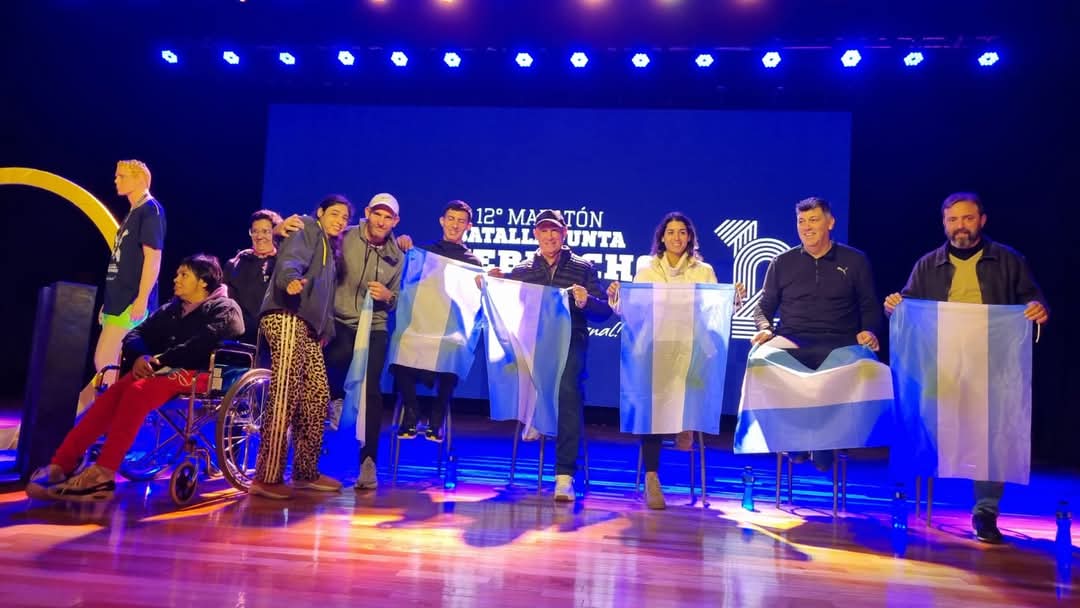 Lo acompañaron el presidente del Concejo Municipal, Juan Manuel De Grandis, el director de Deportes, Gustavo Rojas, el maratonista puertense Lautaro Bruzzoni, el titular de Natural Run, profesor David Perazzo, y Magalí Landriel.